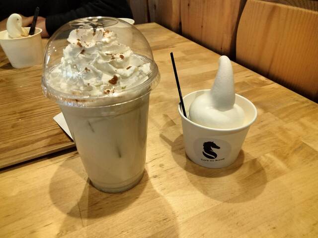 濃厚な北海道牛乳のミルクソフトとアフォガード╰(*´︶`*)╯♡濃厚でぽってりしたミルクソフトクリームとエスプレッソ美味しかったです♡比較的混んだ新大久保で席数多く回転も良いかと思います!テラスも開放...