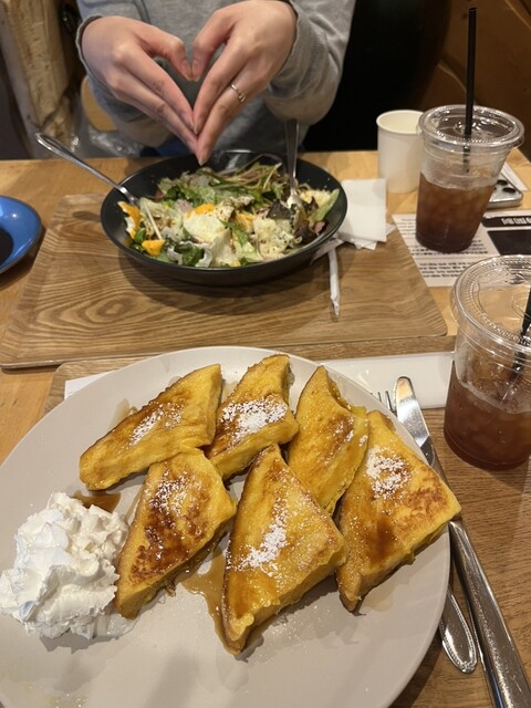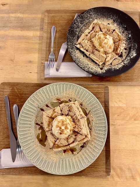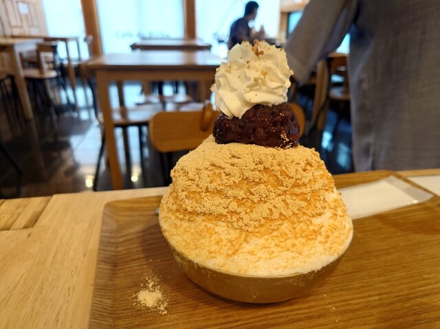 きな粉餅ハニーバタートースト1150円のを食べました。とても美味しかったです。席を取ってから頼む方式でしたがすぐに座れる場所も確保できました。店内はすごく賑やかでしたが、勉強などをしてる人も見られました。