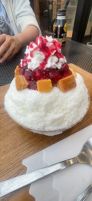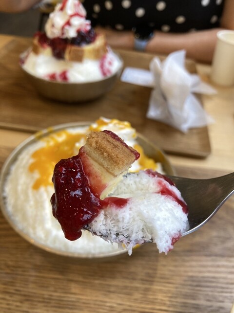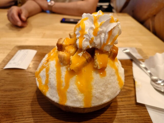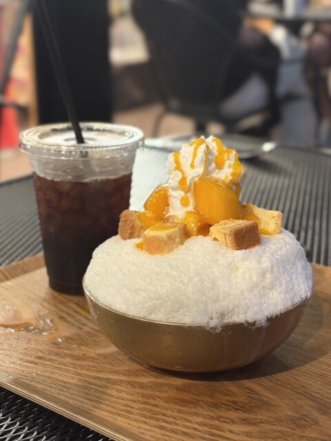焼肉を食べに行った帰りに甘いものが食べたくなり、外のメニューにあったマンゴーチーズケーキかき氷が気になって入店。