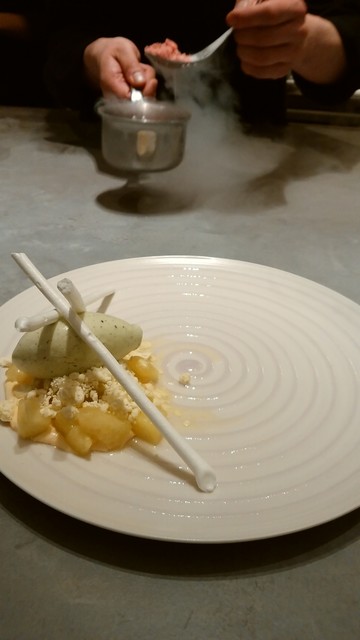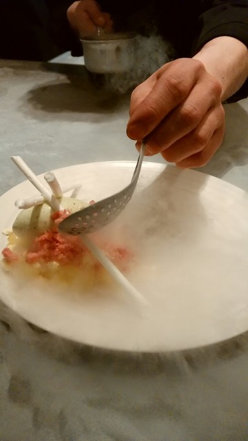 シェフとアーティスト、2つの顔を持つジャニス ウォンが生み出すのは、五感で楽しむ四季折々のアシェットデセール。単品だけでなく、異なるタイプのデザートをコースでご体感いただくのがおすすめです。大きなオープンキッチンを舞台に、パティシエは液体窒素での急速冷凍や桜のチップを使った燻製など、まるでマジックのような多彩な調理を繰り広げ、時代の最先端をゆくデザートを完成させます。また、専属のバーテンダー...