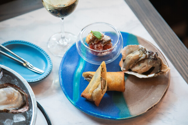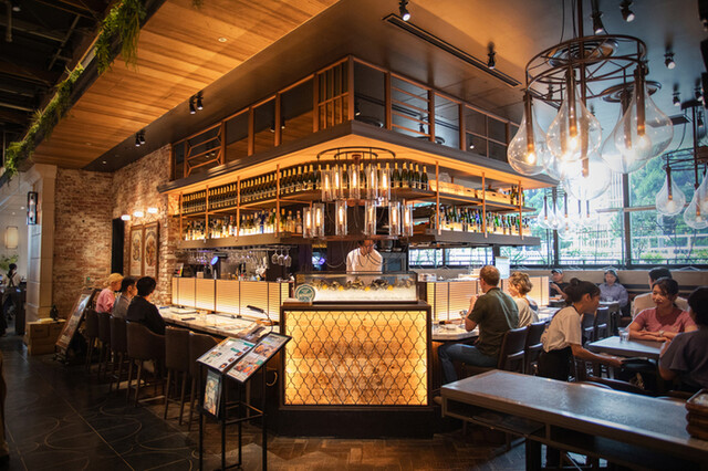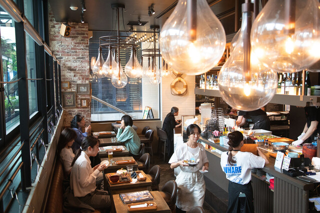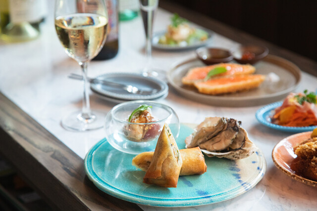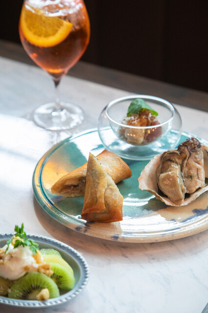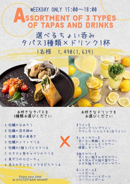 「埠頭、波止場」の意味を持つオイスターバー「WHARF(ワーフ)」。ワーフには、日本各地の熱い想いを持った生産者から厳選された牡蠣が毎日届きます。私たちの使命は、牡蠣を通じて、お客様と生産者の笑顔を集めることです!ディナーメニューでは、全国から届く『生牡蠣の3種食べ比べ』、兵庫県産の『焼き・蒸し牡蠣盛合せ』、ワーフの魅力が全て堪能できる『牡蠣づくしの海鮮タワー』が人気です。 |