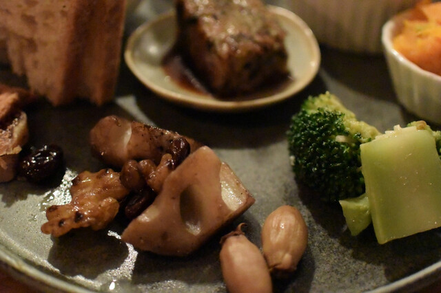 お通しのおつまみプレートは、もうこれで十分では?という程の豊かさ。食材にも調理にも一つ一つに想いが感じられるというか。追加で頼んだドライフル...