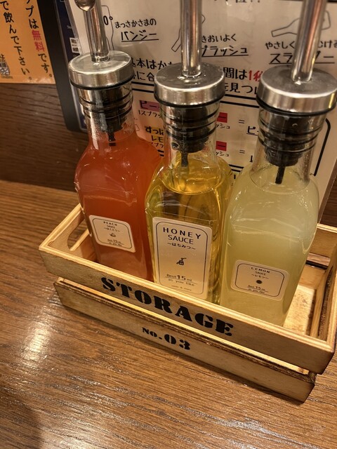 卓上に3種類のシロップがあり、サワーも味変しながら飲めるので楽しい。