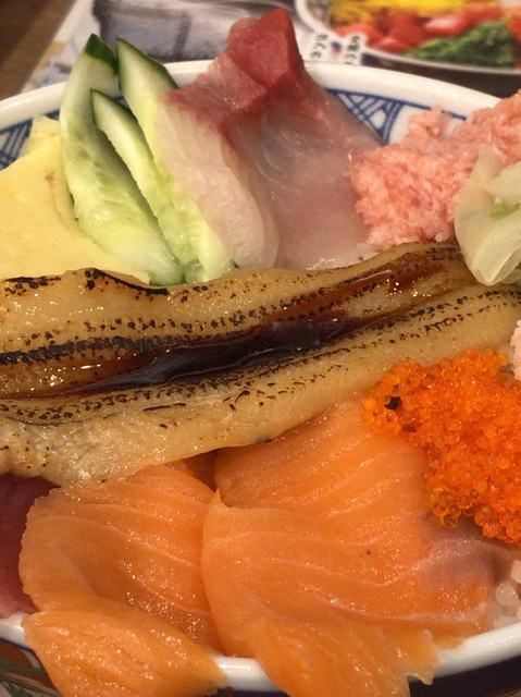 海鮮丼と浜焼きが有名な磯丸水産 開いてるお店が少ない日曜日深夜も早朝まで営業! 五色丼+あおさ汁にイカの浜焼きを追加 一人でも浜焼きが楽しめる貴重なお店 場所は大久保通... 詳細を見る