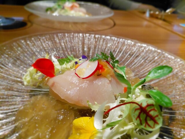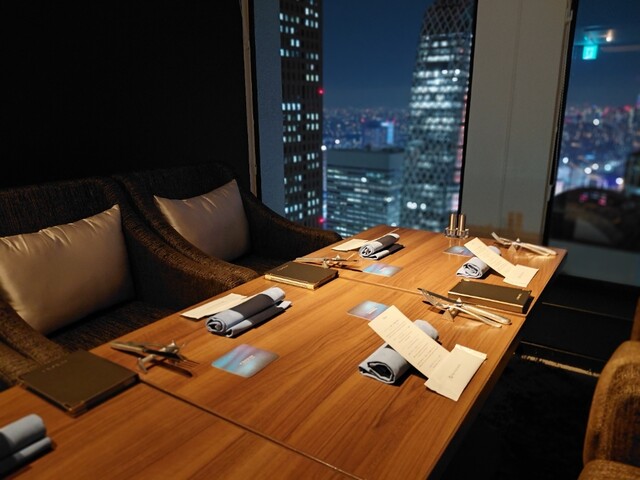 お店は2016年12月オープン。新宿京王プラザホテル45階にあります。豪華だが寛げる素敵空間。窓際席からは東京の夜景が一望できる。素晴らしい雰囲気ですね。テンション上がります。果たして、料理のお味はいかに(*´∇`)ノ