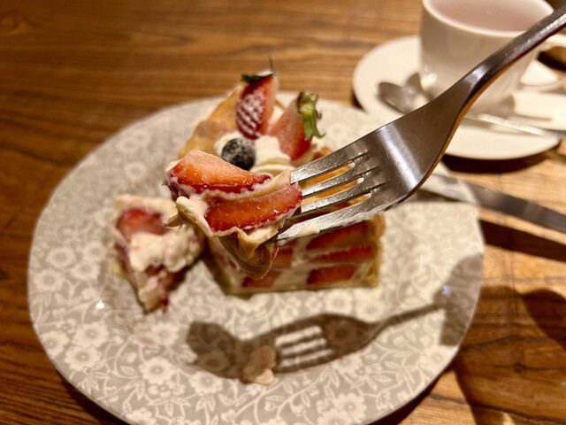 クレープやミルクレープをメインとしたスイーツと、軽食を楽しむことができます。もちろん美味しい紅茶を提供しています。