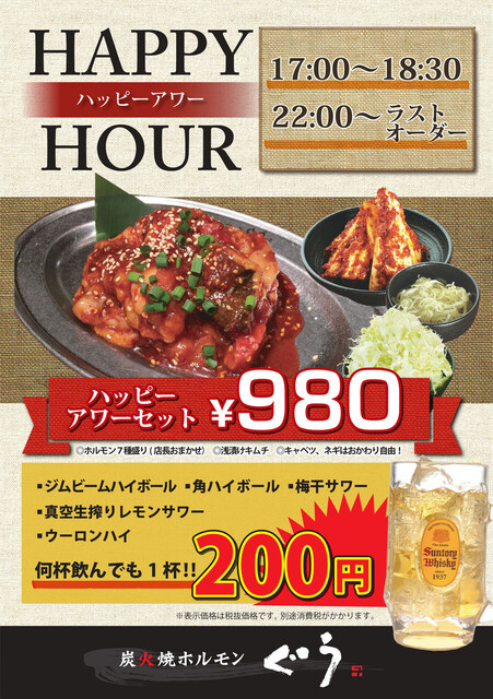 | 関連店舗情報 | 炭火焼ホルモン ぐうの店舗一覧を見る |