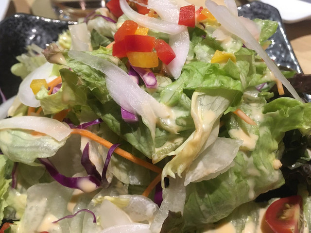 そしてサラダを取り分けます。シャキシャキして新鮮なサラダがみずみずしい。