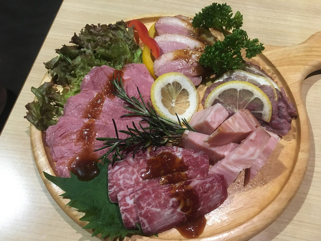 牛タン、厚切りベーコン、馬刺し、ローストビーフ、鴨ロースです。