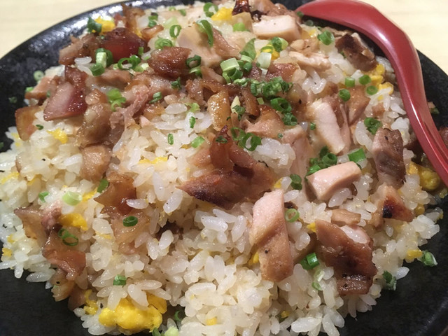 玉子と鶏肉が入ったガーリックチャーハン。濃すぎない味で、たくさん料理を食べていたので、さっぱりしていていい感じです。