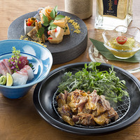 「だれやみ」とは、宮崎方言で「だれる(=疲れる)」のを止める、晩酌という意味です。 お料理も楽しみたいけどお酒も楽しみたい!というお客様向けのショートコースです。 メイン料理は下記からお選びください。 みやざき地頭鶏の炭火焼 おいも豚の炭火焼(+500円) 宮崎牛の炭火焼(+1,500円) +2700円で飲み放題のご利用も頂けます。