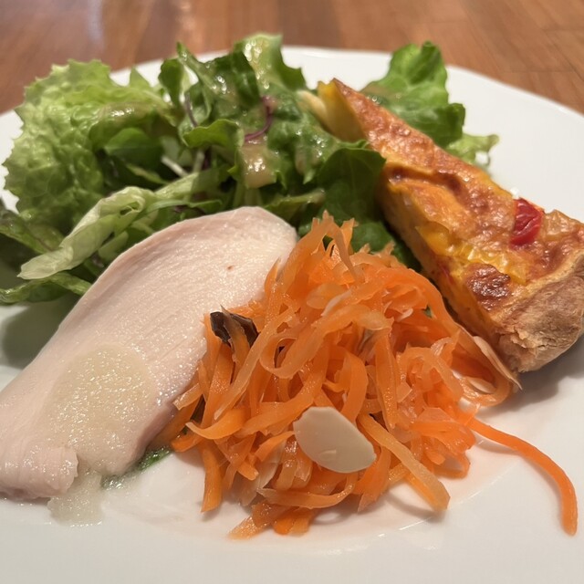 葡庵チキンのランチ 1150円 前菜+メイン+雑穀米のライス 前菜はオクラのキッシュ、鶏ハム、キャロットラペ、サラダ。 キッシュがおいしい。オクラが入っているのも珍しいし、下の記事がタルトのようにサクサクしていて、ただの硬めの卵焼きとは違うのが良い。 鶏ハムもとても柔らかくおいしかった。... 詳細を見る