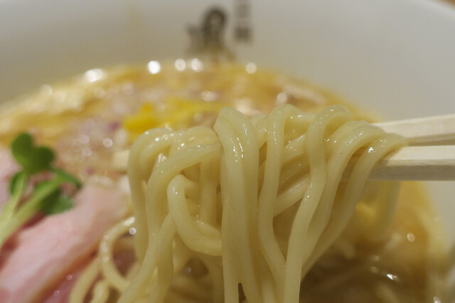 私共がご提供するのは、高級魚の一つ“金目鯛”のアラ出汁を使ったラーメン。温度管理・炊き出す時間に徹底的にこだわって創り出したスープは“金目鯛”の旨味が押し寄せてくる圧巻の味。喉越し良く、小麦の風味豊かな麺との相性はいうまでもありません。