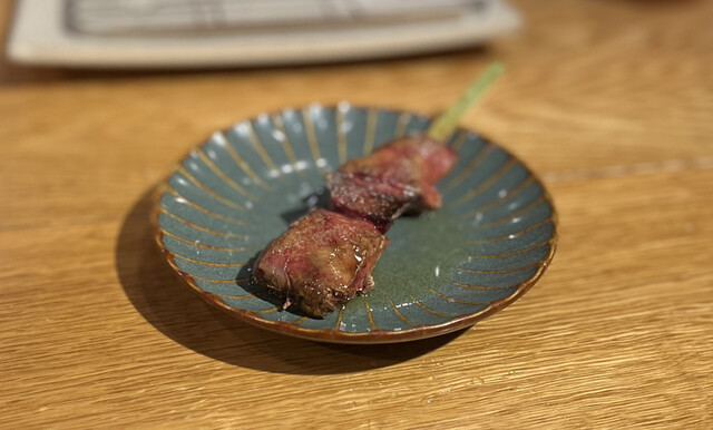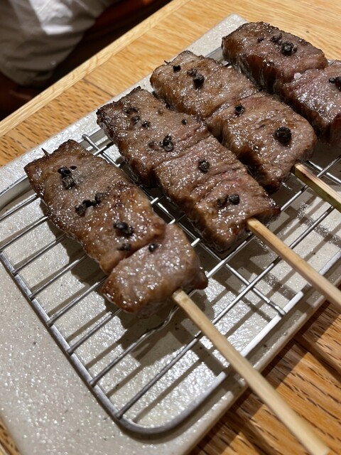 コースに追加でもう1本 名物!和牛串539円(税込み)→400円(税込み)