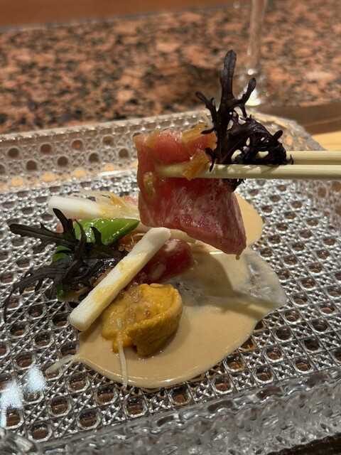 以前から気になっており接待で初めて利用致しました。 店内は清潔感があり落ち着いた雰囲気で個室も綺麗で広さも十分です。 旬の素材と拘りのお肉を組み合わせたバラエティに富んだ個性豊かな料理の数々は見た目も楽しく、全てがとても美味しかったです。 今回は以下のコースでお願い致しました。 ... 詳細を見る