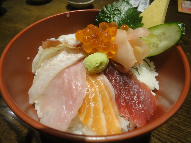 ランチメニューはその日は海鮮丼のみ、500円(税抜)。