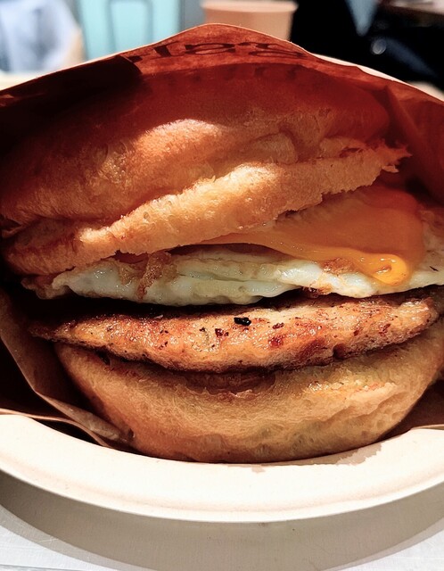 15分ほどで到着、バンズ、オーバーミディアムエッグ、チキンパテ...
