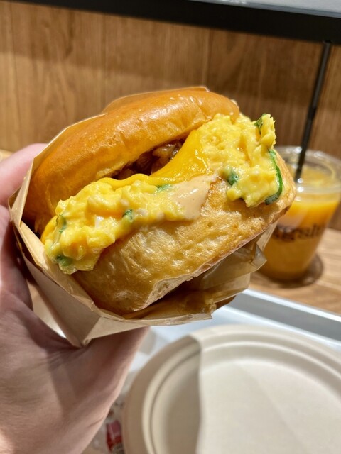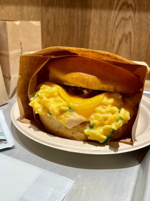 平日火曜日13時頃訪問しました。 カウンター席のみで外国の方も多かったです。 新宿駅南口から近く、利用しやすい。 【フェアファックス サンド ハッシュドポテト付 ¥1,290】 注文してから10~15分ほど待ち呼び出しベルにて提供。 まず分厚いバンズにスクランブルエッグ‼️ これ... 詳細を見る