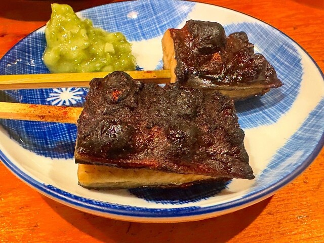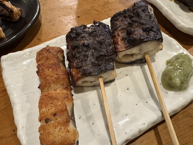 オフ会のゼロ次会で訪店。 先ずはハイボールで喉湿し。カンパァ~~イ! 蒲焼の語源となった蒲の穂焼きをメニューに発見。本来は筒切りした鰻に串を刺したものだが、 当店のは巧に骨抜きが施されている。 ガブリッ、皮目はバーナーで炙ってあるのでパリッパリ、身は直接火が入っていないのでかなりシットリジューシー。シンプルな塩焼きで山葵でいただく。これ美味い! 倶利伽羅と肝を追加投入。うな串専門店と比す... 詳細を見る
