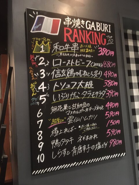 「串焼き。ビストロガブリ 新宿野村ビル店」。
