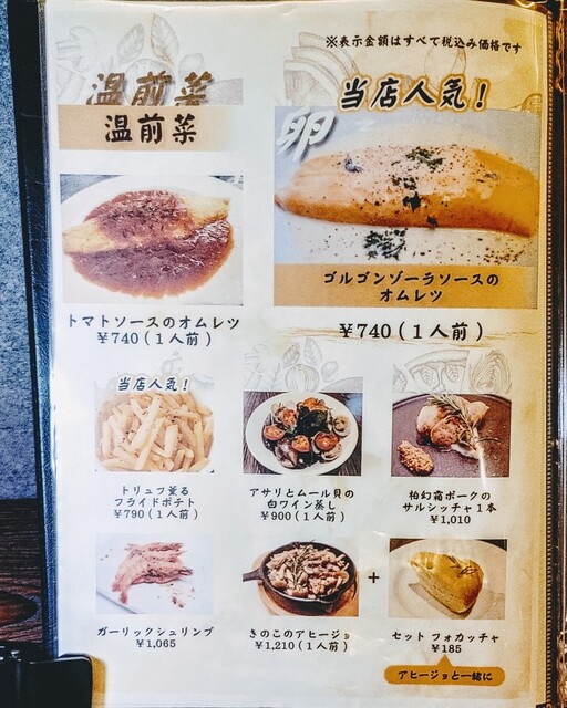 ワインとお肉料理がおいしい、そしてオリジナルのオムレツスパゲッティが頂けます