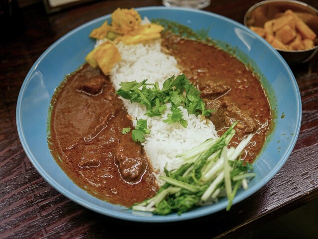 仕事で代々木上原から秋葉原への移動の途中に新宿で降りてランチをいただくことに。 カレーの気分だったので、新宿三丁目駅周辺で探してヒットしたお店。ちなみに元々、ゴールデン街で間借り営業していて、2020年にこの場所に移転オープンしたお店らしい。 お店には金曜日11:25に到着。オープン5分前だ... 詳細を見る