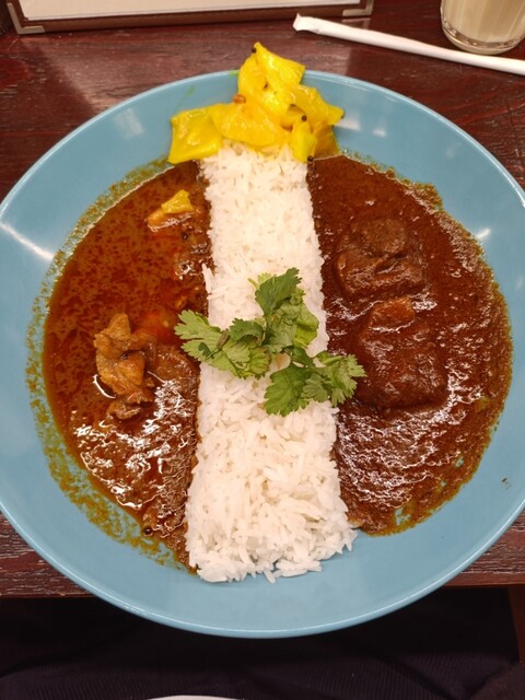 【平日夜 新宿三丁目】 進化し続けるポークビンダルー +50円 旨み深い無水チキンカレー +100円 カレー二種盛り1400円 チキンピクルス400円 新宿三丁目界隈 ... 詳細を見る