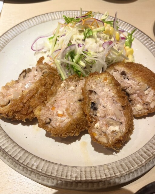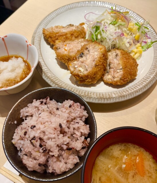鶏と竹の子の和風メンチカツ おろしポン酢定食 1220円 手しおごはん 玄 新宿南口店の「鶏と竹の子の和風メンチカツおろしポン酢定食」は、家庭的な味わいとボリューム感が魅力の定食です。 まず、メンチカツの大きさに驚きました。鶏肉と竹の子がぎっしりと詰まっており、食べ応えがあります。鶏肉の... 詳細を見る