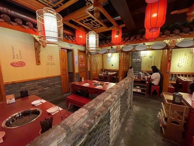 中国本土に約600店舗展開の人気火鍋店が日本初上陸!タイムスリップしたかのような朱赤の店内は、100年前の中国の雰囲気を再現。憧れの中国旅、町食堂へ来たような気分をお楽しみいただけます♪中国で火鍋は大切な人の門出を祝う開運フード。唐辛子で埋め尽くされた赤色のスープなど、縁起の良いものを詰め込んでいます。そこに注ぐのは脂の吸収を抑える中国茶。美容や健康にも良いと言われるパワーフ