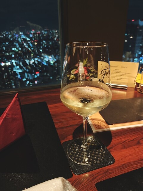 夜景がロマンティックで素晴らしいのと、座席が半個室のような形でゆったりしてるので、特別な日のお食事として絶対に記憶に残ります。写真はメモリアルコースのお料理です。