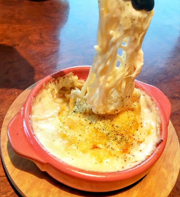 パッと見はグラタン。ボルケーノ=溶岩というイメージからはかけ離れているようですが、表面のチーズを崩すと、大量の熱々...