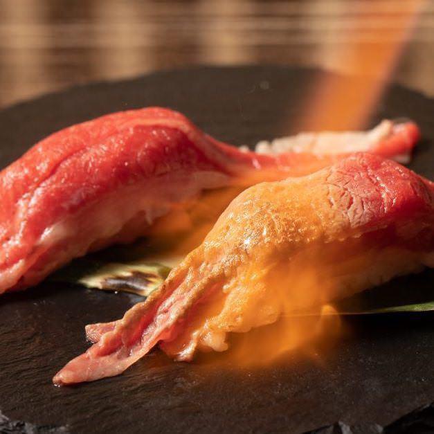 ・《日~木限定》2時間飲み放題付「炙り肉寿司食べ放題含む全16品コース」【3500円→2500円税込】