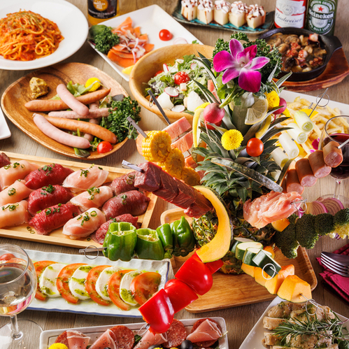 「【1番人気】3時間飲み放題付「炙り肉寿司&炭火焼鳥&ステーキ等全40品食べ放題コース」5100円→3600円税込」がおすすめです。