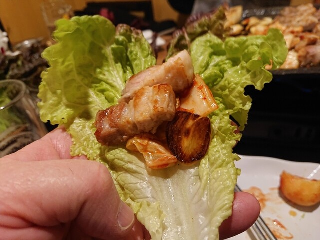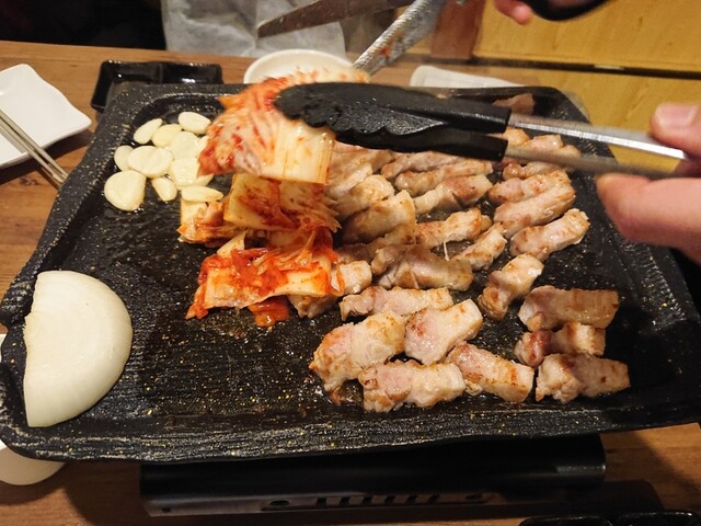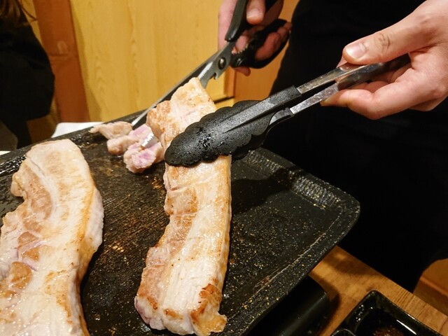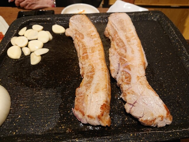 サムギョプサルというと豚バラの薄切りのイメージがありますが、こちらのは、厚みが2cmくらいはあります。