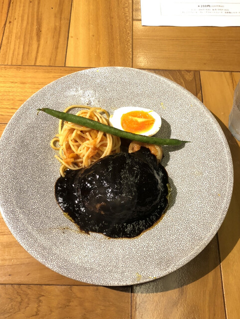 カウンター席だったので調理中のトリュフの香りは漂ってきましたが、デミグラスソースからはあまりせず。ナポリタンはソースを絡めたハンバーグとでは味が濃くて食べきれませんでした。