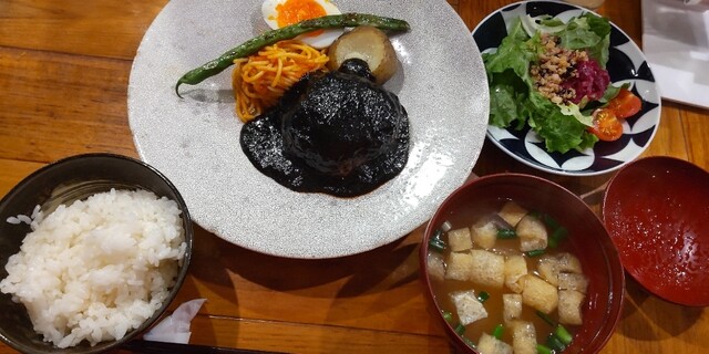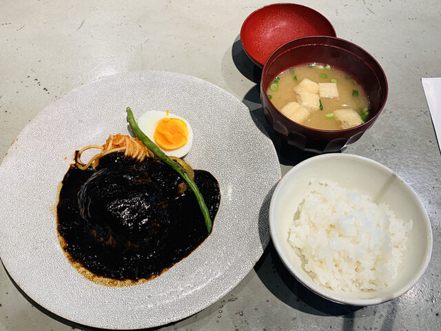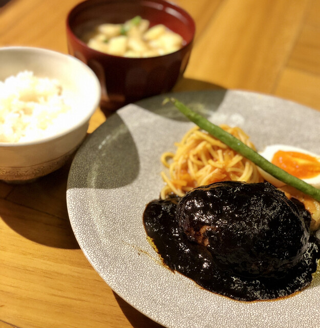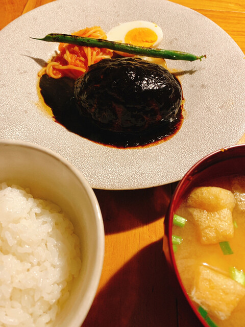 メニューは1種類で、丸型のハンバーグに濃いめのデミグラスソースがかかっていて付け合わせはじゃがいも・ゆで卵・いんげん・ナポリタン。ご飯とみそ汁はお代わり自由で、サラダが少量ついてき... 詳細を見る