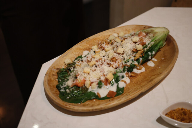 └本場メキシコのガーリックバターを使用した温かいサラダ。芯のしゃきしゃき食感に対し、葉っぱ部分は柔らかく、味が染み込んでおり美味✨