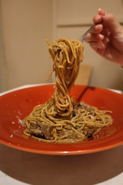 └ストップを言うまでチーズをかけてくれる、チーズ好きにはたまらないパスタ。濃厚なクリームとチーズの組み合わせが最高です!