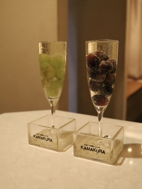 └お店イチオシのスパークリング。この日は白ぶどうと赤ぶどうでした!溢れるまで注いでくれるのがうれしい✨ピックもついていたのでフルーツも余すことなく美味しくいただけました!