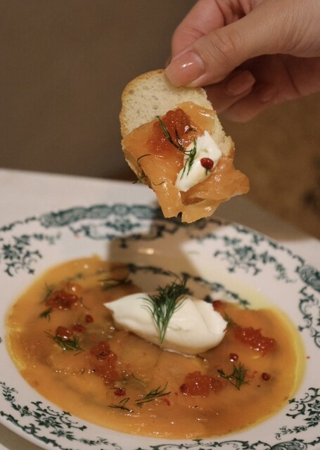 └お店おすすめのマストトライメニュー!バケットに乗せていただくのですが、言わずもがな美味しさ。サーモンとクリームの組み合わせが絶妙で、ディルが良いアクセントになっていました!女子受け間違いなし。