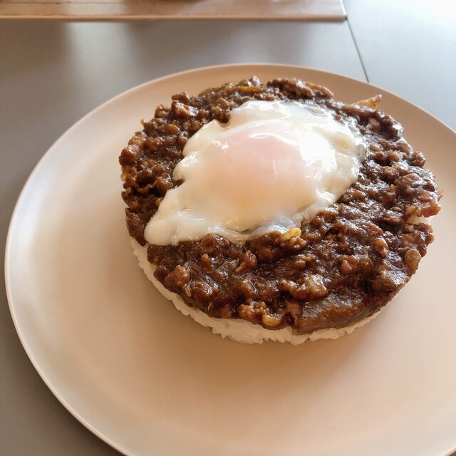 ワークショップと貸し会議室とカフェが入った小ぶりな建物の向かいに、小屋のようなトレーラーハウスのようのものが建っていて、それがカレー屋さんです。