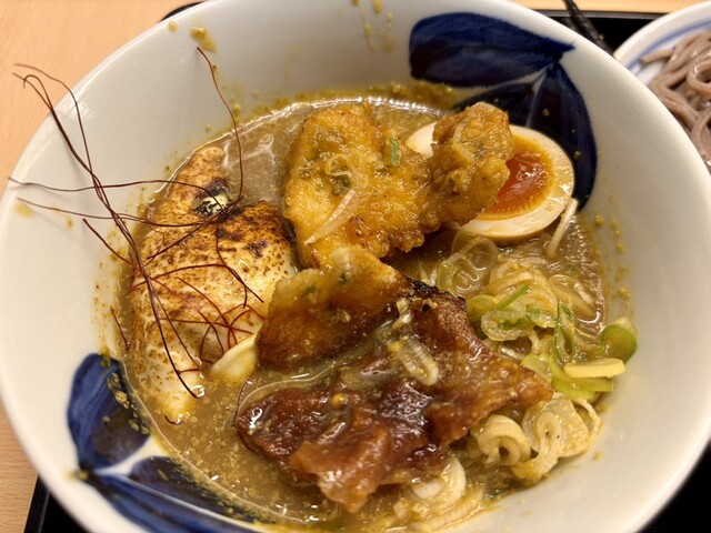 新宿野村ビルの地下にあるつけ蕎麦屋。卓上の卵1個無料が嬉しいです。初めて食べたカレーチーズは濃厚トロトロでお蕎麦とも合いますね!肉もたっぷり入っていてボリューム抜群。今回も大満足で... 詳細を見る