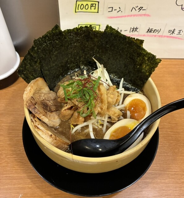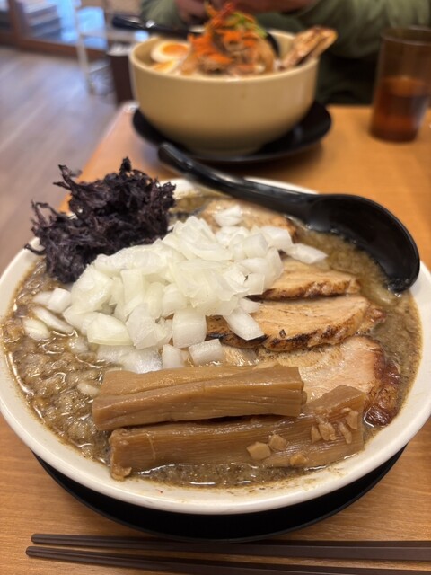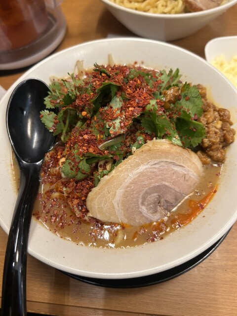 見た目から濃厚そうでめっちゃ期待してたんですが、実際はちょっと想像と違ったかも。麺が細めで大盛りにしたせいか、スープが少なめで後半は麺だけになってしま...