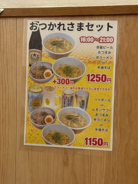 夕方16時〜21時の【おつかれ様セット】があり、これがもう気になって仕方なかったので、今度はこっそり夕方の16時から行って飲みながら小ラーメン食べたいです!