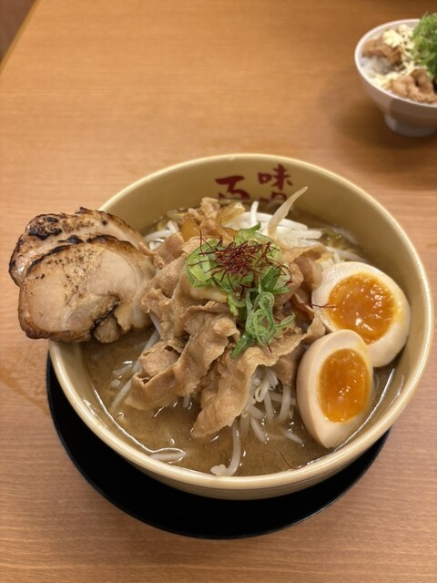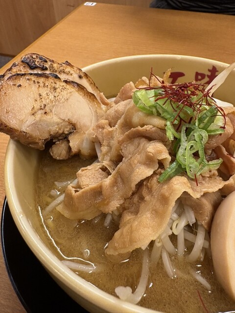 見た目が綺麗!!そしてお肉が2種類ある!!麺を確認すると北参道とかは二郎系?的な太いゴワゴワ麺でしたが、こちらは町中華とかに多い中太麺!これがびっくりしたことに、めちゃくちゃ味噌と絡まって合う!!!北参道とは違う美味しさでびっくりしました!!くどくないのに濃厚で美味しく麺に絡んでの麺の固さも◎!美味しくて大盛り食べたのに小ラーメン追加しようか迷いましたw夏のこの暑い日なのにここまで食欲出たのはびっくりです!