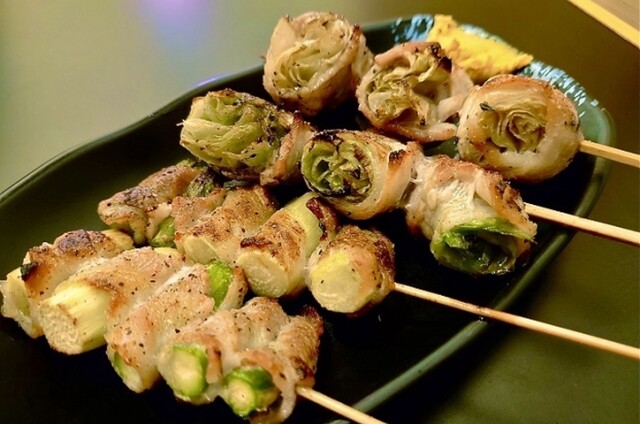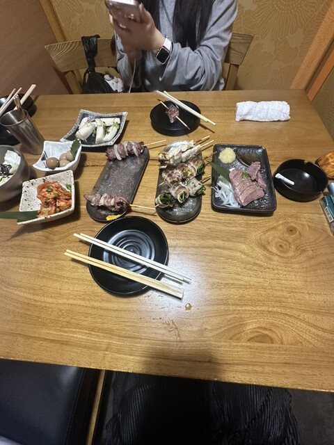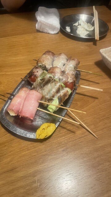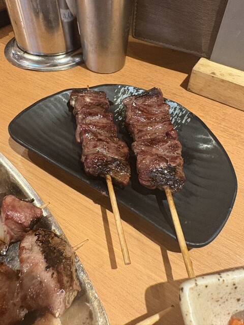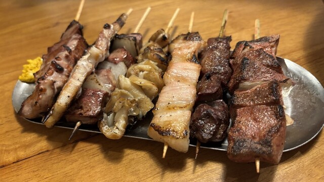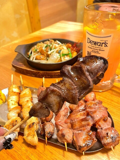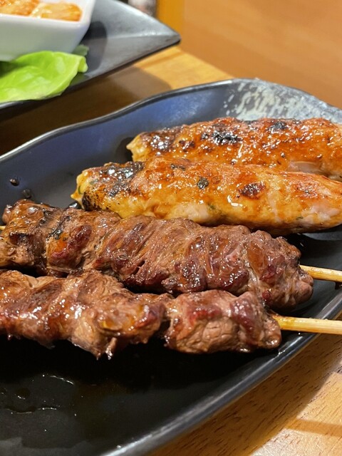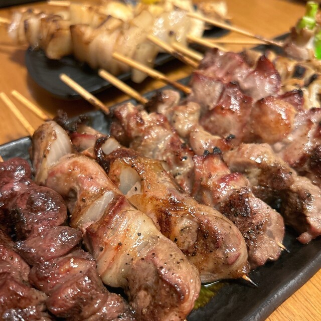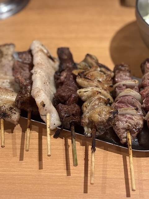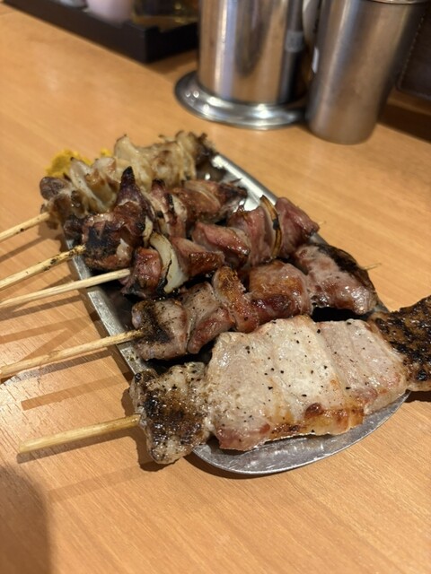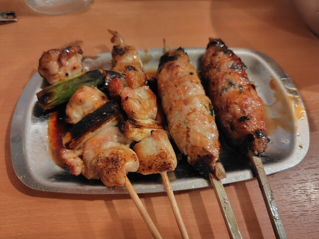 食べ物は、鳥串のネギ間、つくねのタレ...