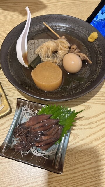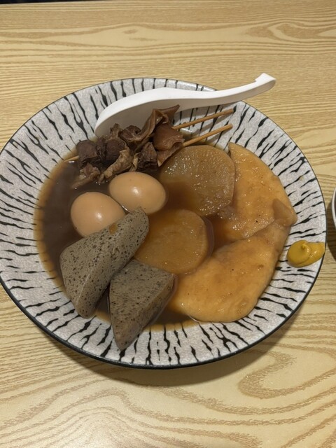 駅から近くアクセスが良いので、仕事帰りや待ち合わせにも便利な個室居酒屋でした。店内は落ち着いた雰囲気で、周りを気にせずゆっくり食事を楽しめます。今回はおでん、野菜串焼き、牛ハラミ、海鮮焼きそば、そして...