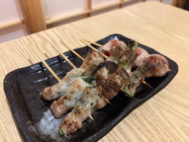 当店では炭火でじっくり焼き上げた串焼きと野菜巻き串をお楽しみいただけます。 |
