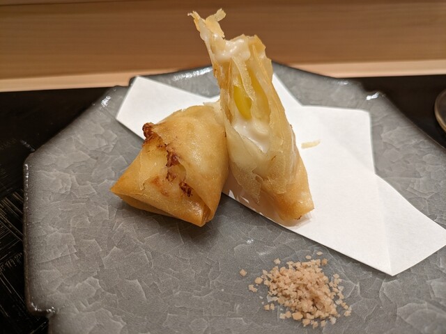 白子の春巻きはとろーりのもうホワイトソースでした 笑