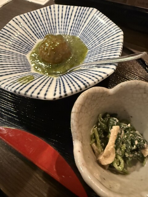 ⭐️前菜 季節の2種盛り ⚫︎新銀杏空揚げ ⚫︎万願寺とうがらしじゃこ和え その時期の旬の先付け2種 ⭐️旬のお造り2 ⚫︎季節の白身 薄造り⚫︎宮城県 塩釜産 本鮪⚫︎あしらい色々 (別途料金)お造りを3点 4点盛りに変更可能 ⭐️選んでいただいた日本一鹿児島黒牛しゃぶしゃぶ又はすき焼き ⚫︎しゃぶしゃぶ又はすき焼き 野菜盛り ⚫︎日本一の鹿児島黒牛サーロイ ⚫︎薬味葱 おろし又は卵 ⭐️食事 ⚫︎銀シャリ又は雑炊 又卵かけご飯 漬物 ⭐️デサート ⚫︎季節のアイス 又は 店長木瀬特製 デサート